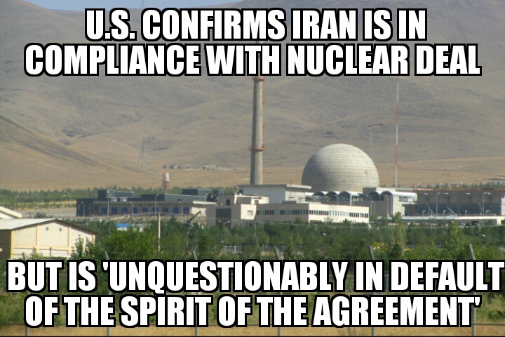 U.S. confirms Iran in compliance with nuclear deal