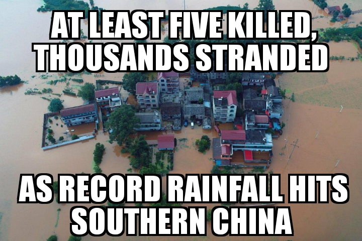 Record rain causes flooding in southern China.