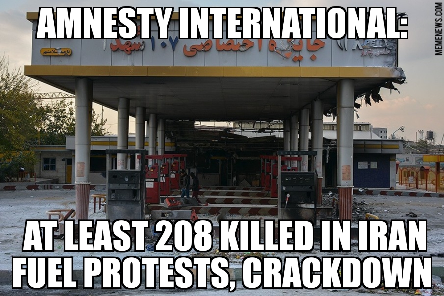 At least 208 killed in Iran fuel protests.