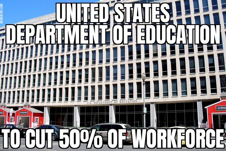 Department of Education to cut half of jobs.